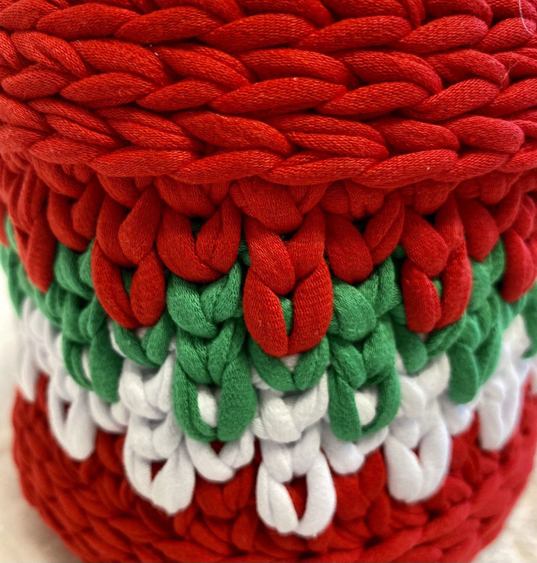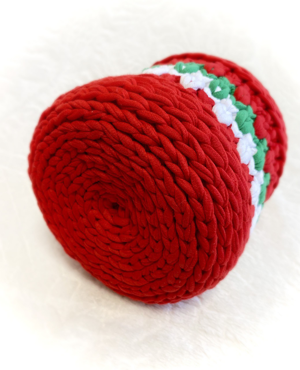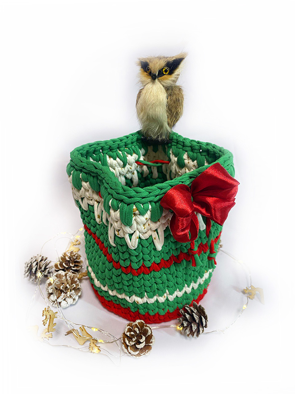 Шкатулка "Рождество" выполнена из трикотажной нити , шириной 7мм. В этот волшебный период, когда воздух наполнялся ароматом пряников и мандаринов, сердца людей наполнялись радостью, надеждой и желанием подарить всем вокруг счастье и любовь, самое время задуматься о подарке. в шкатулочку можно положить любую мелочь, сладости, записочки. Донышко и крышка выполнены из плотной вязанной основы.