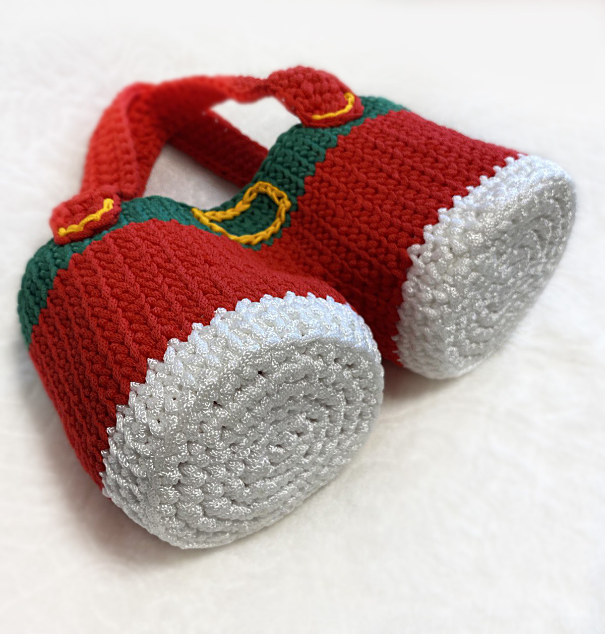 ✨В этот волшебный период, когда воздух наполнялся ароматом пряников и мандаринов, сердца людей наполнялись радостью, надеждой и желанием подарить всем вокруг счастье и любовь. ✨ Выполнен из полиэфирного шнура, ширина пряжи 5мм. ✨"Новогодний Сапожок" – это не просто подарок, это символ заботы и любви. Не упустите возможность сделать свой праздник незабываемым и заказать «Сапожок» уже сегодня!