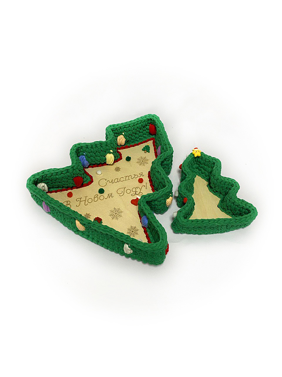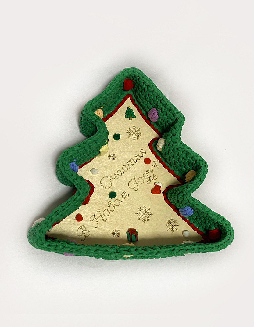 Комплект Шкатулок "Елочка" с маленьким бортиком выполнены из трикотажной нити, шириной 7мм.у шкатулок деревянная основа., может служить разносом для фруктов и вазочкой для конфет или орешков.