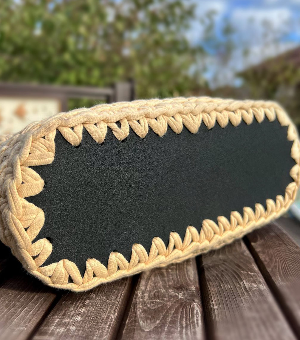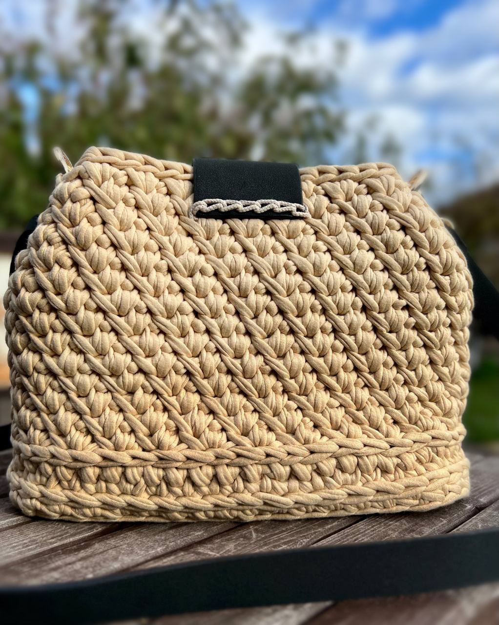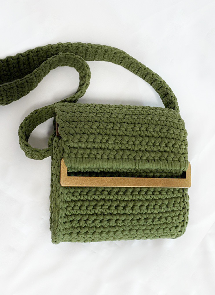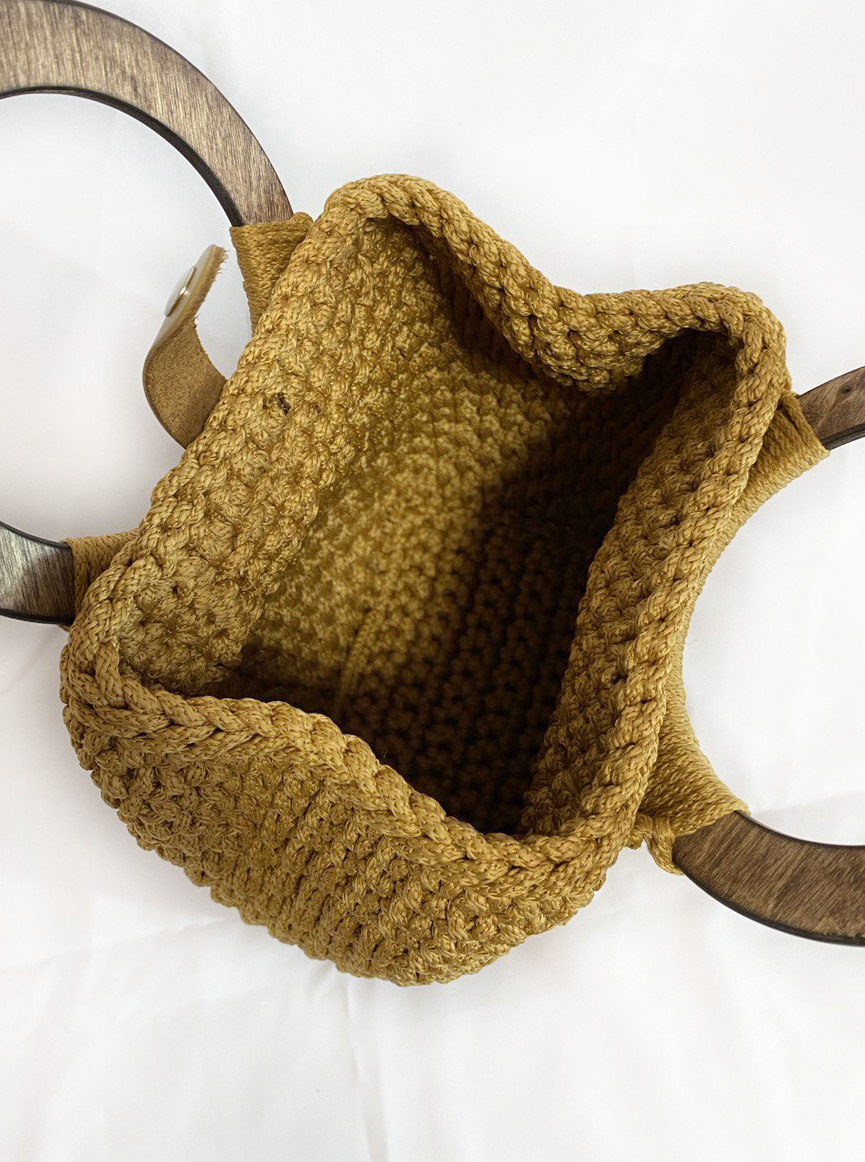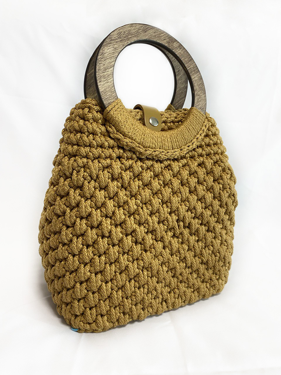 Сумка выполнена из Трикотажной нити толщиной 7мм. Размеры готовой сумки 26смх13см, высота - 22см. Имеет 2 кармашка Фурнитура натуральное дерево под лак