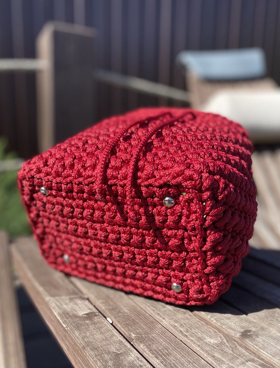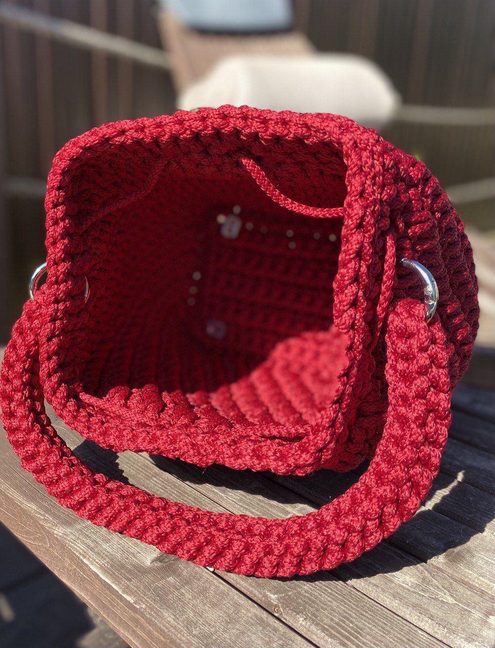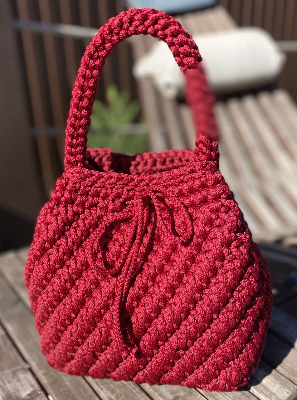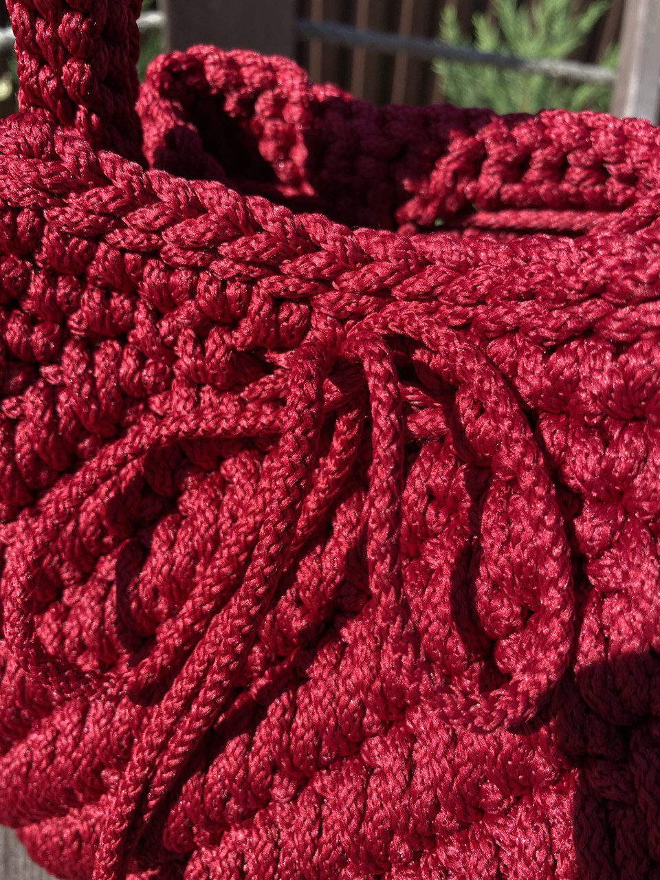 Сумка-Кордон выполнена из полиэфирного шнура с сердечником толщиной 5мм. Шнур плотный, крупный, износостойкий, не выгорает на солнце. Очень элегантная, легкая, вместительная, модная. Цвет"Бордо" Под заказ размер и цвет по желанию заказчика