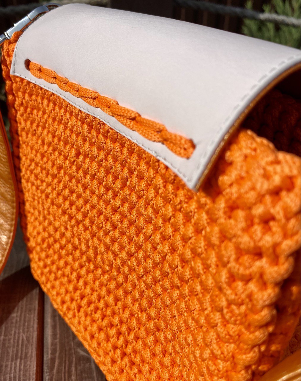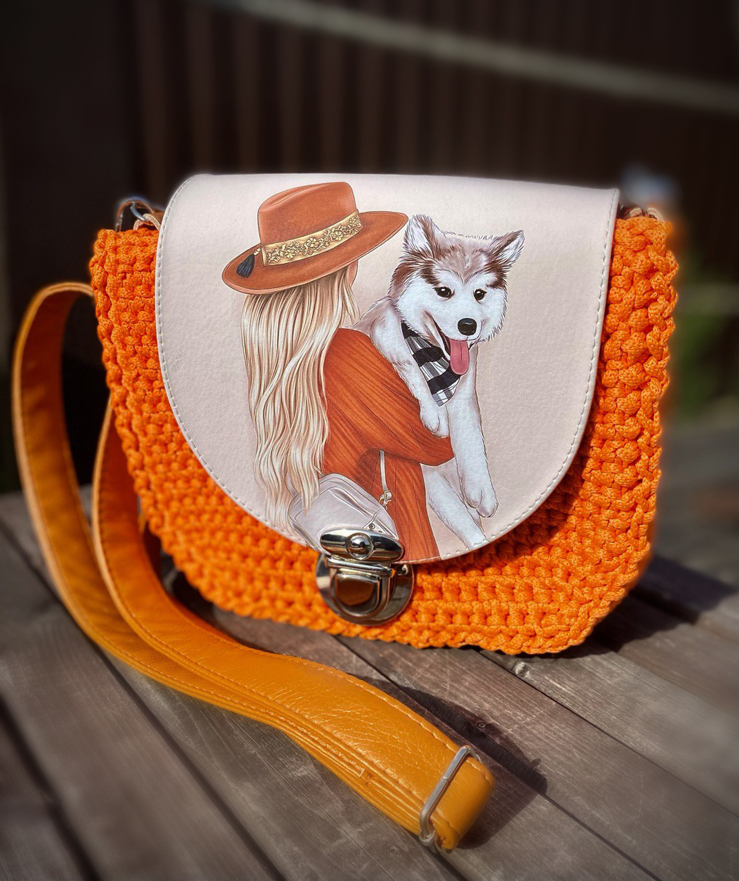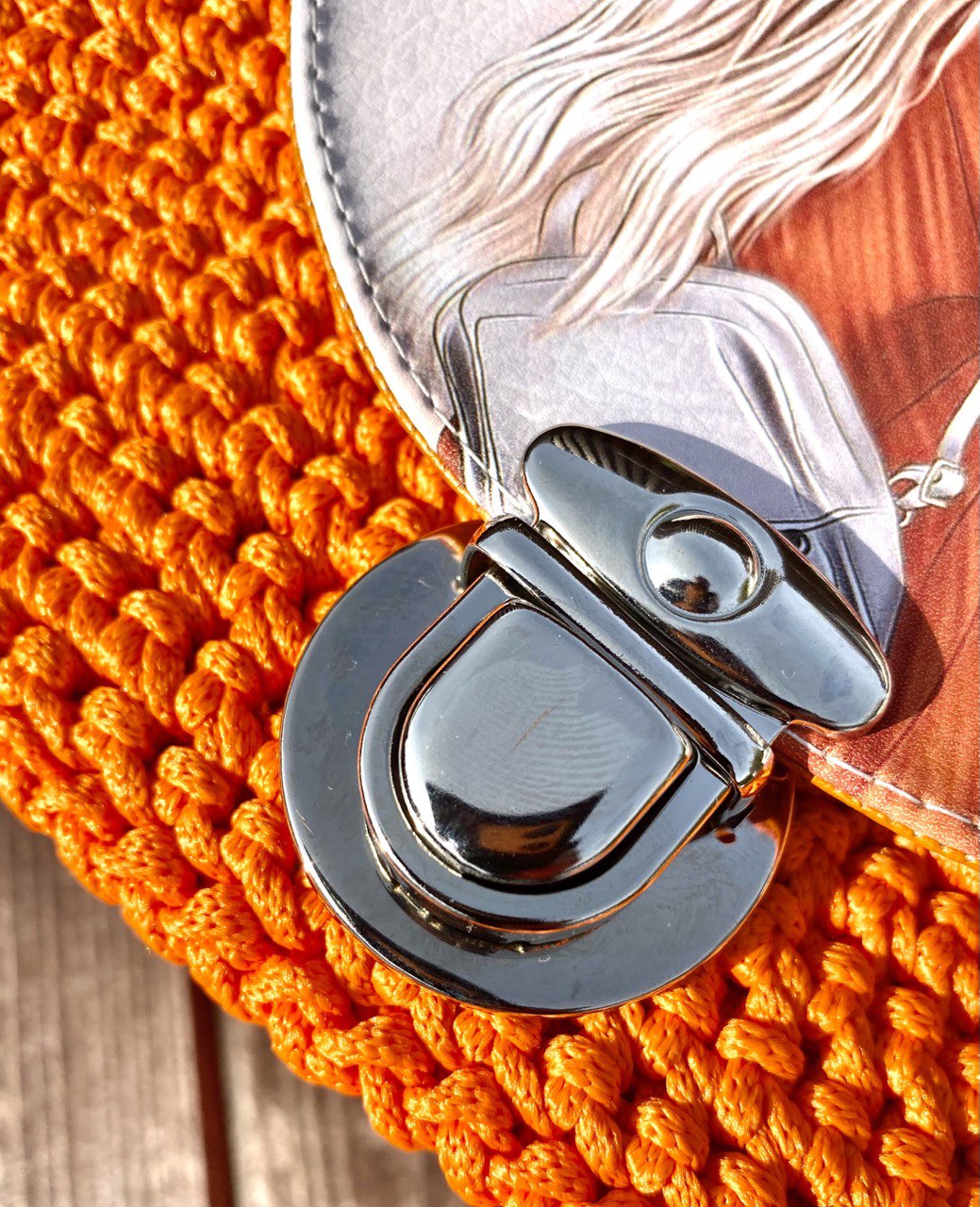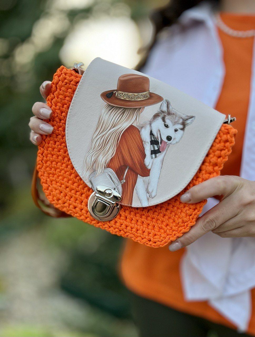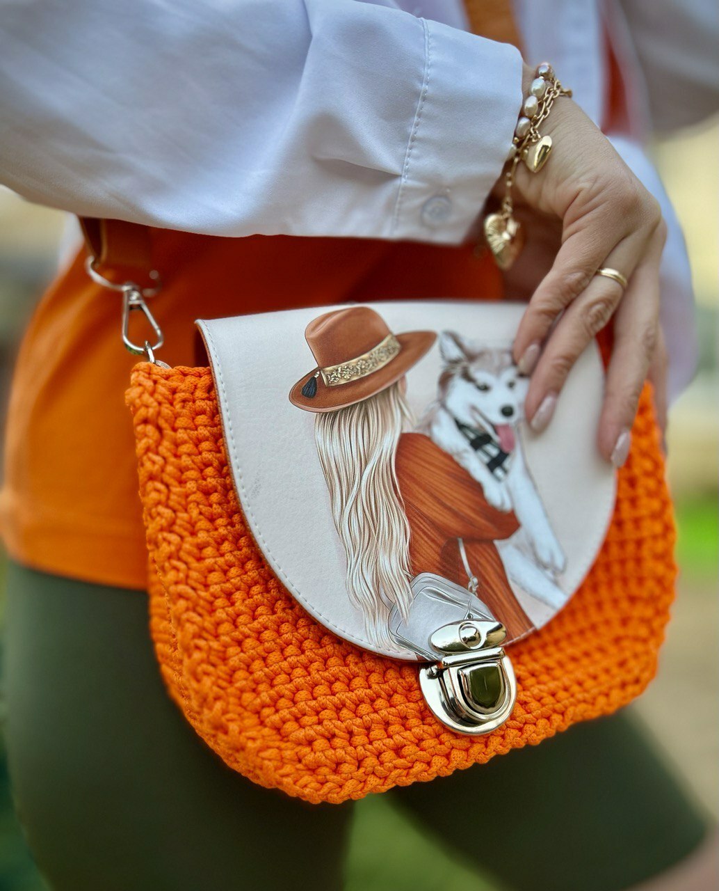 Сумка Кроссбоди "Друг" Выполнена из полиэфирного шнура толщиной 3мм. Плотный рисунок. Сумка идеально держит форму. Пряжа износостойкая, не выгорает на солнце. Клапан с ярким принтом выполнен из качественной экокожи. принт не смоется, не облезет, устойчив к погодным условиям. Цвет яркий оранжевый.