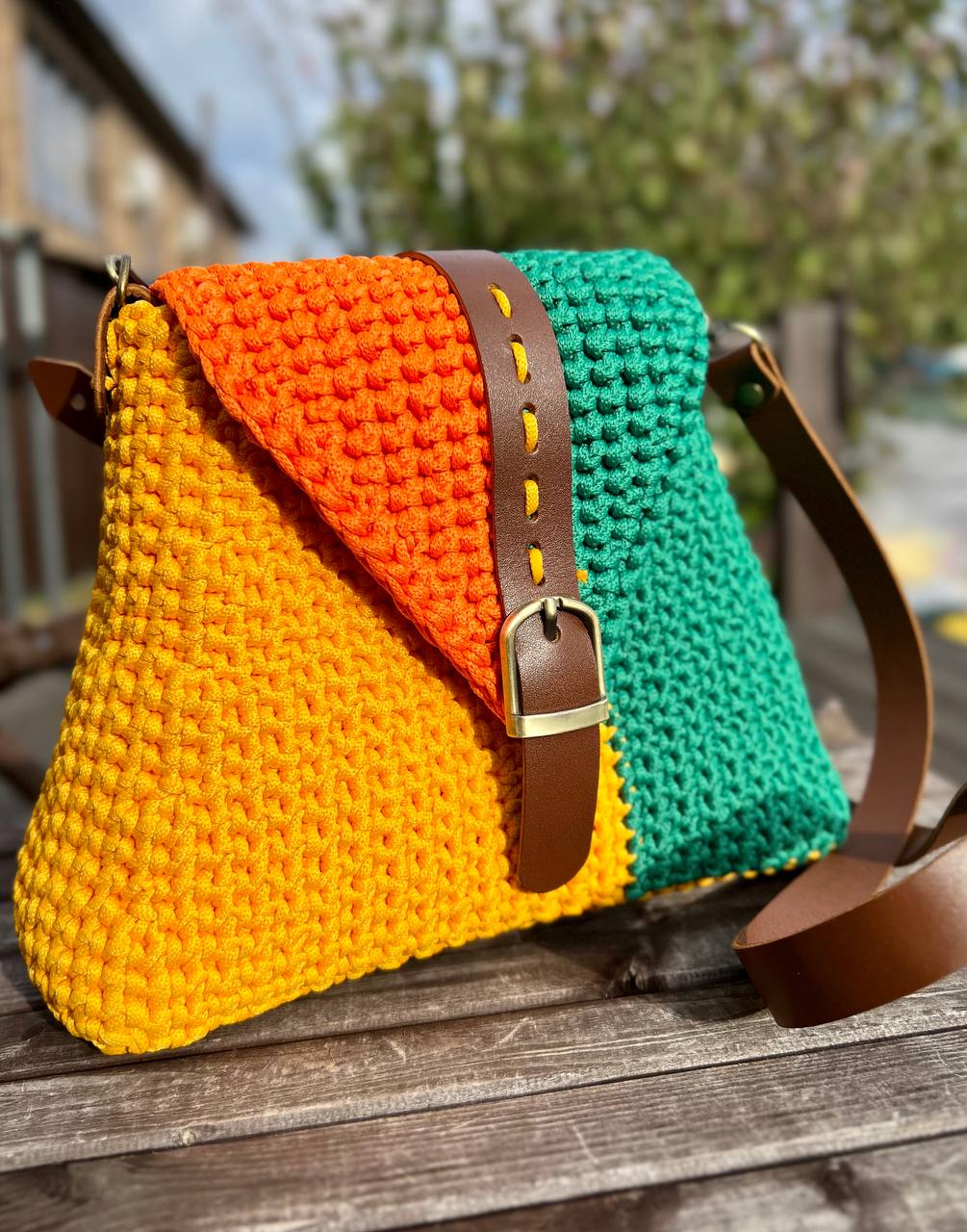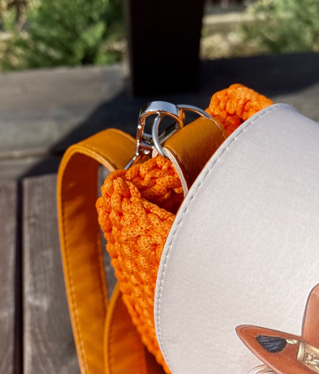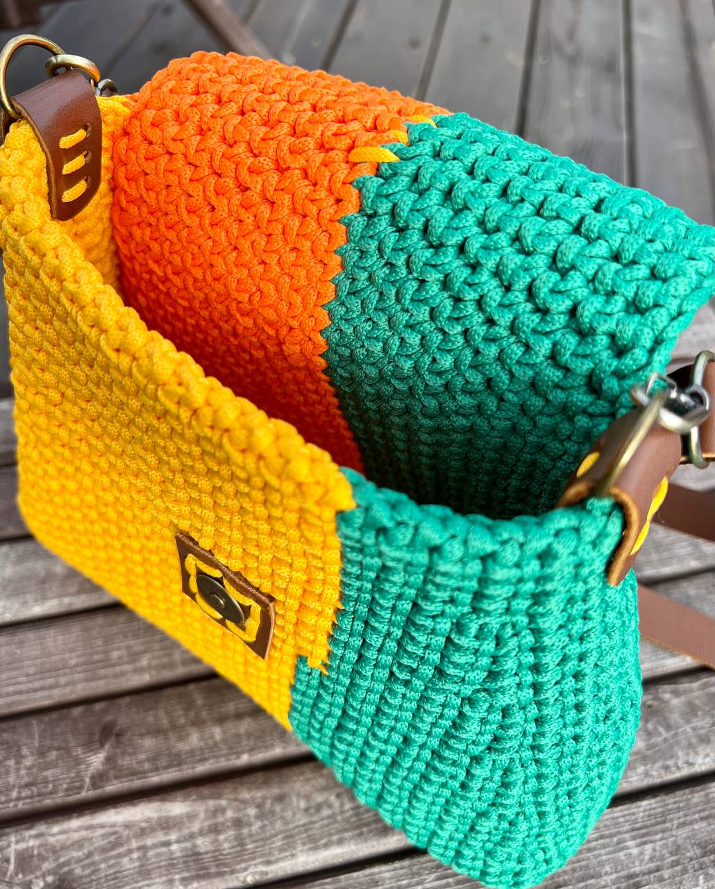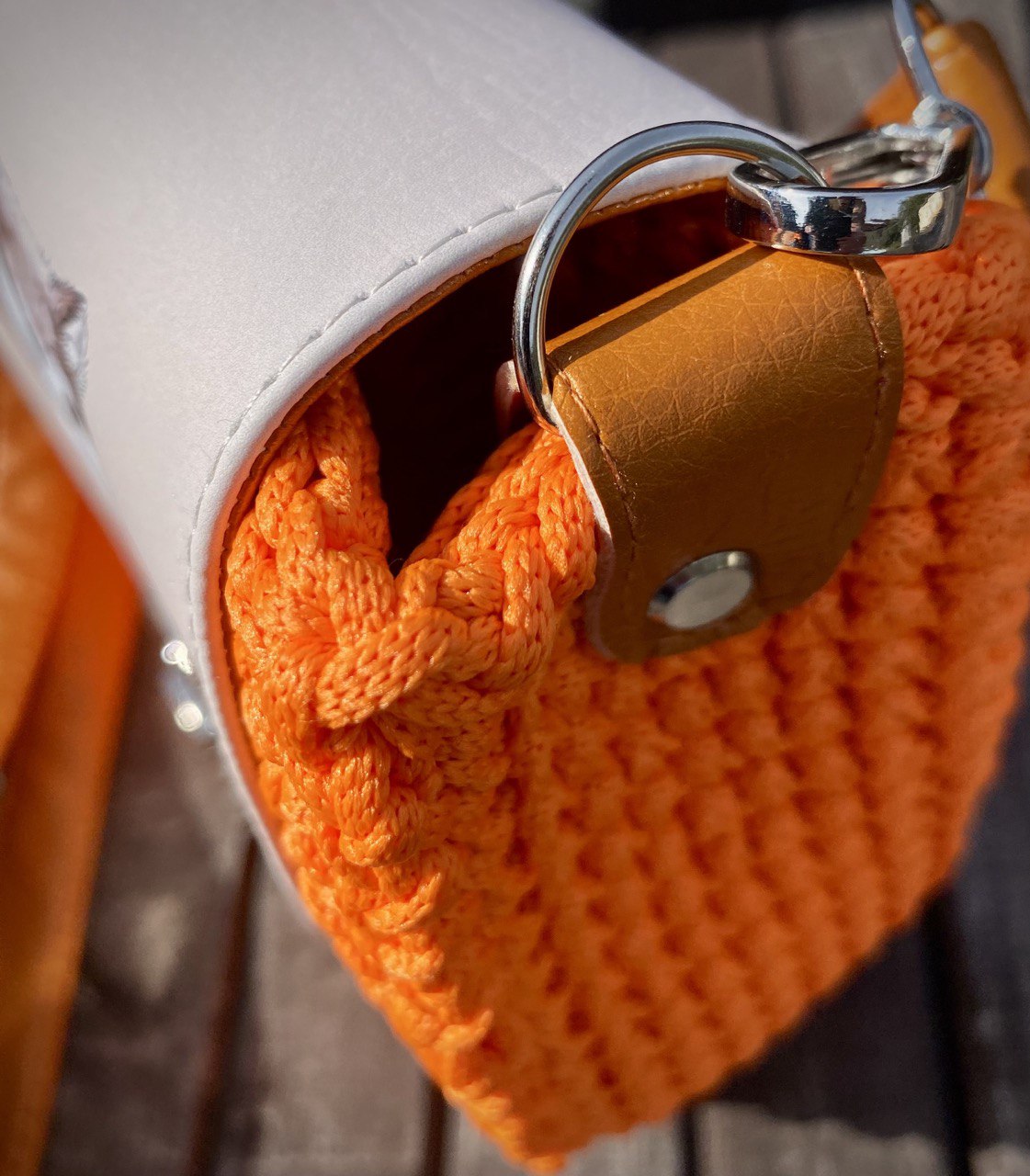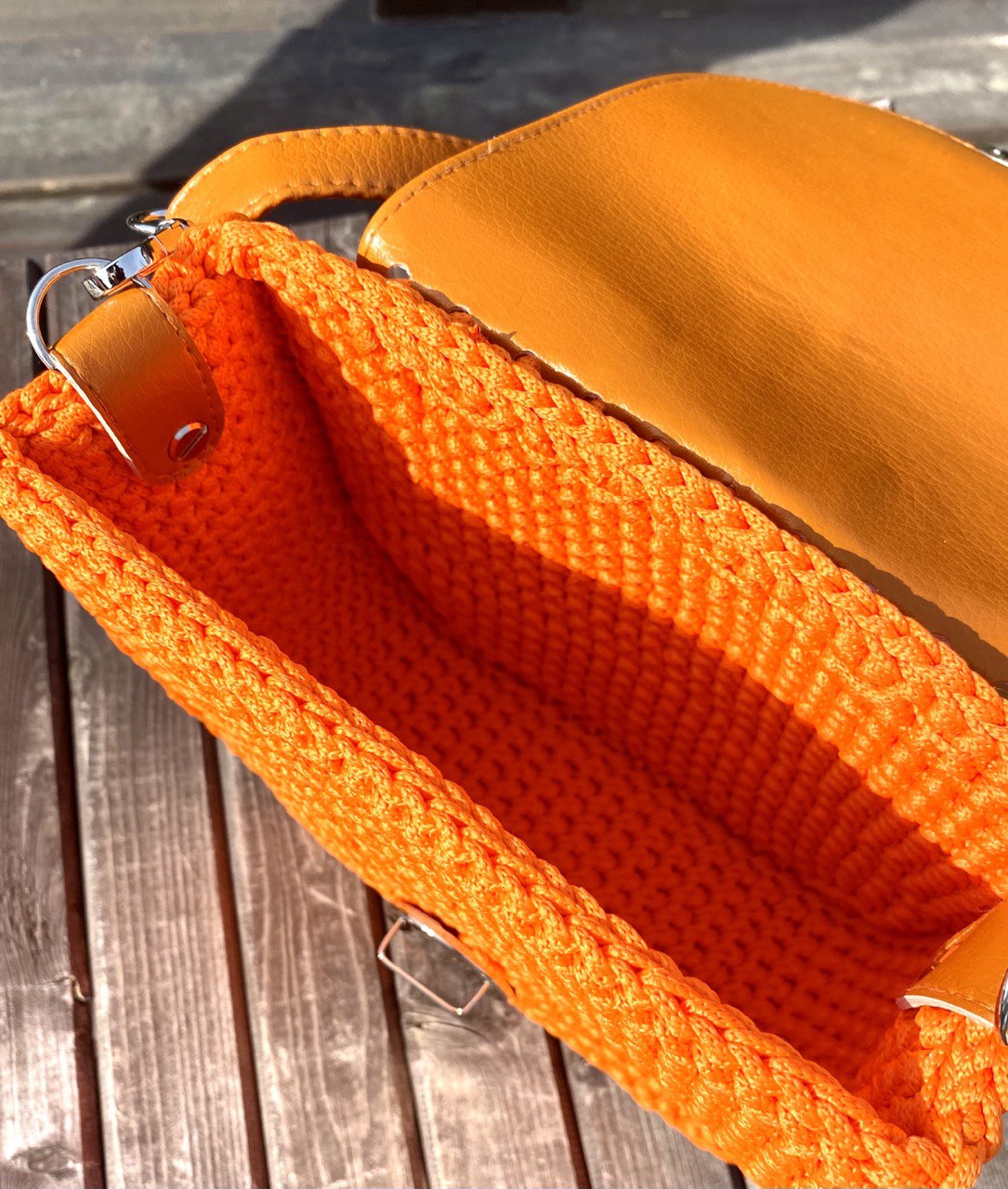 Сумка Кроссбоди "Друг" Выполнена из полиэфирного шнура толщиной 3мм. Плотный рисунок. Сумка идеально держит форму. Пряжа износостойкая, не выгорает на солнце. Клапан с ярким принтом выполнен из качественной экокожи. принт не смоется, не облезет, устойчив к погодным условиям. Цвет яркий оранжевый.