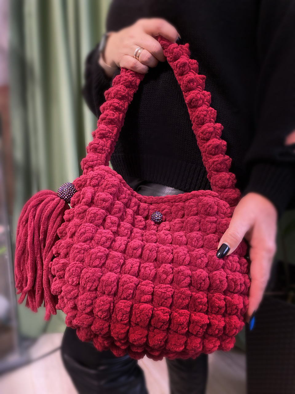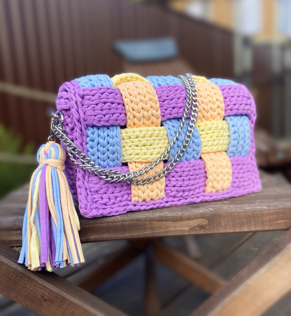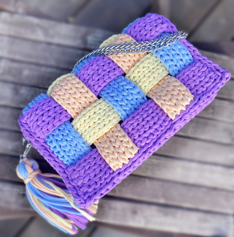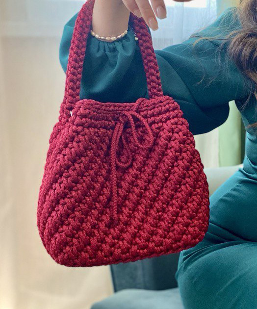 Сумочка "Плетенка" выполнена из Трикотажной нити толщиной 7мм. Яркая, молодежная, мягкая и невероятно нежная. Сумка очень элегантная, легкая, вместительная, модная. Под заказ цвет по желанию заказчика