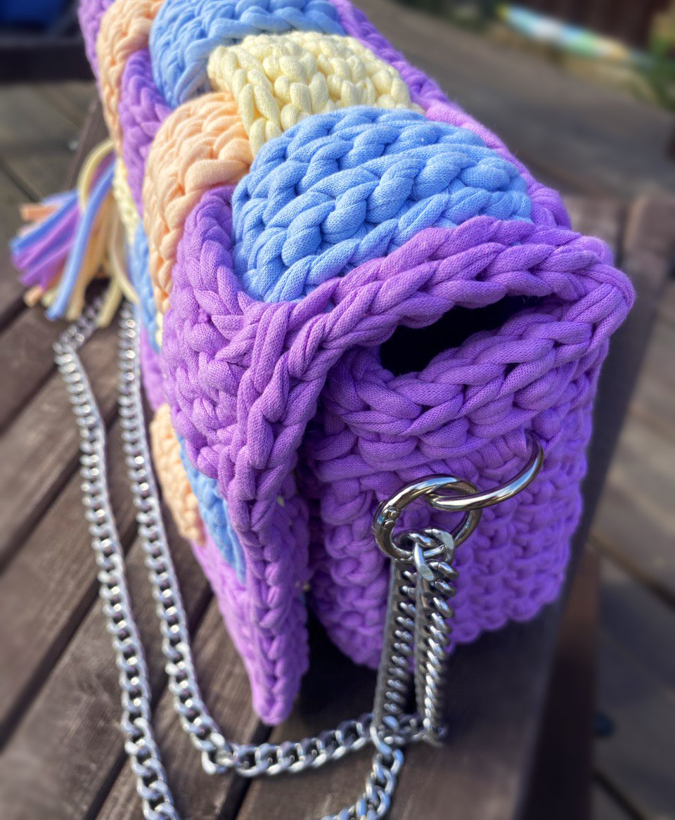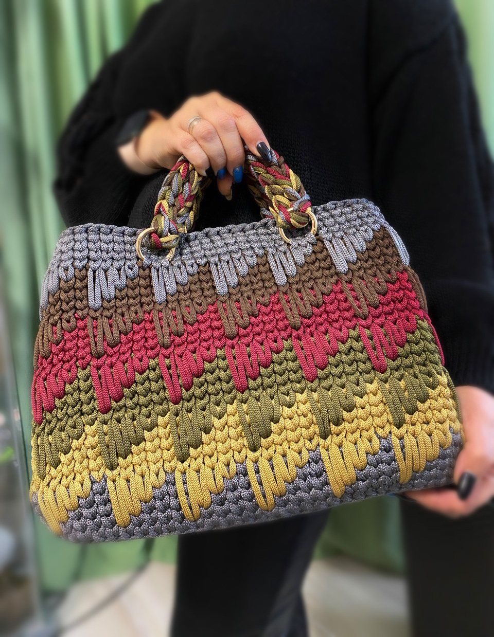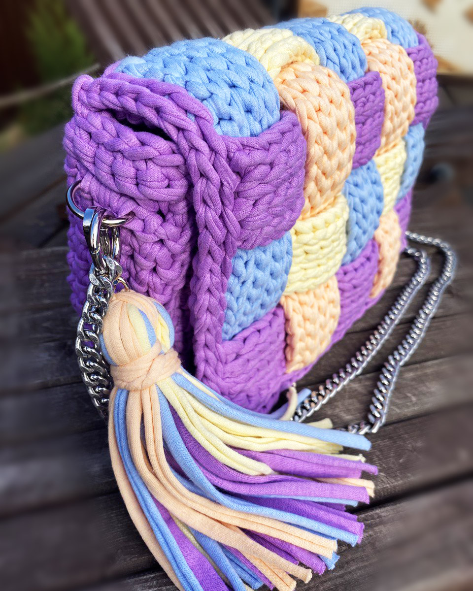 Сумочка "Плетенка" выполнена из Трикотажной нити толщиной 7мм. Яркая, молодежная, мягкая и невероятно нежная. Сумка очень элегантная, легкая, вместительная, модная. Под заказ цвет по желанию заказчика