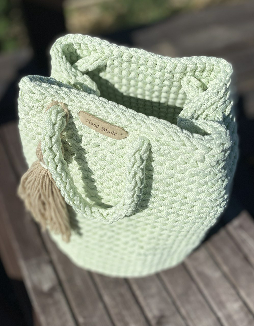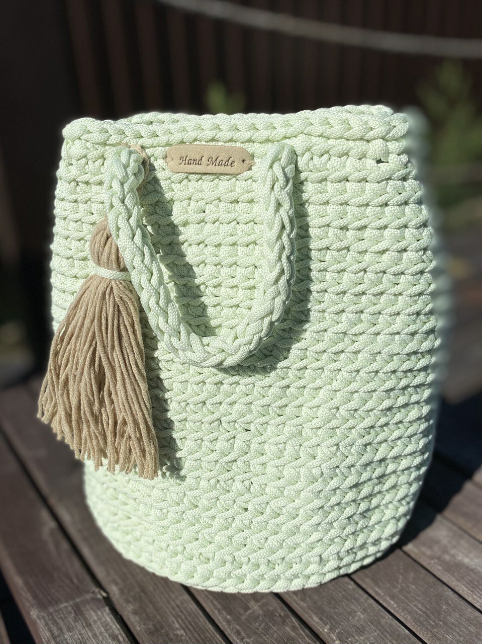 Сумка "Торба" выполнена из полиэфирного шнура толщиной 5мм. Шнур плотный, крупный, износостойкий, не выгорает на солнце. Очень легкая, вместительная, модная. Высота изделия 24 см. Диаметр донышка 21 см Цвет "Фисташка" Под заказ размер и цвет по желанию заказчика
