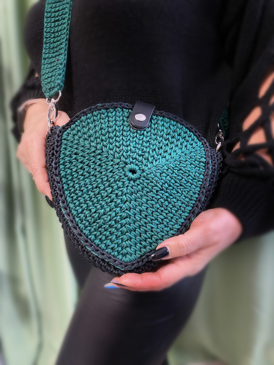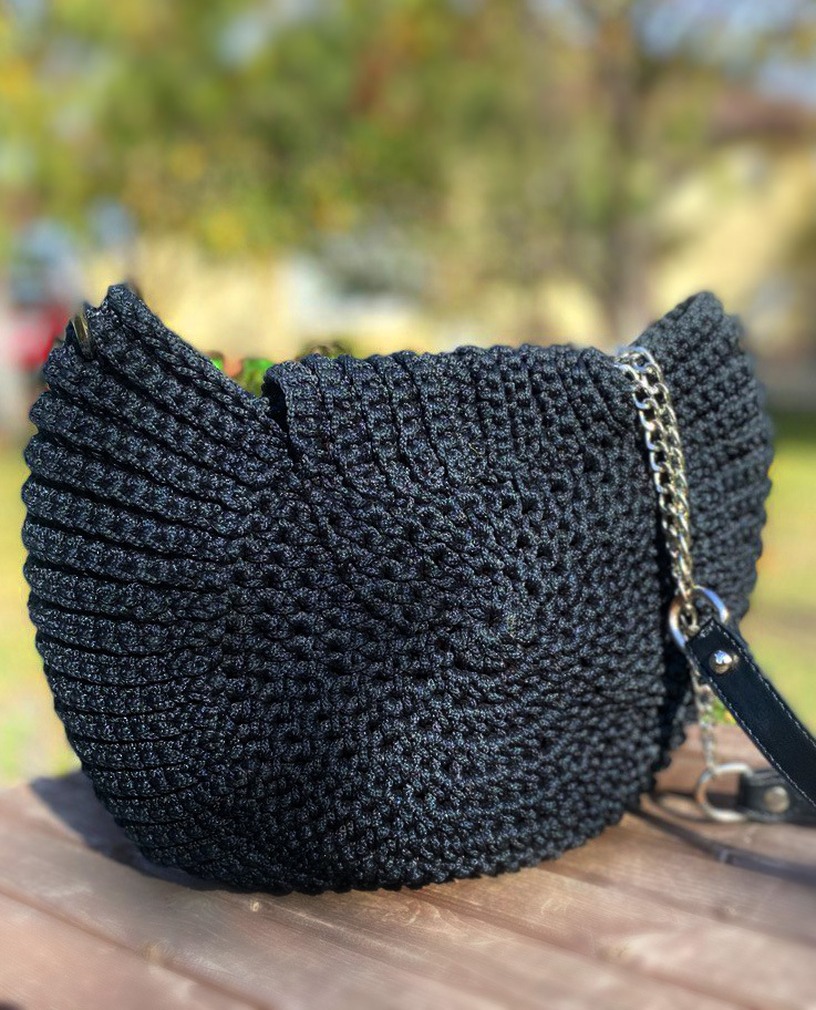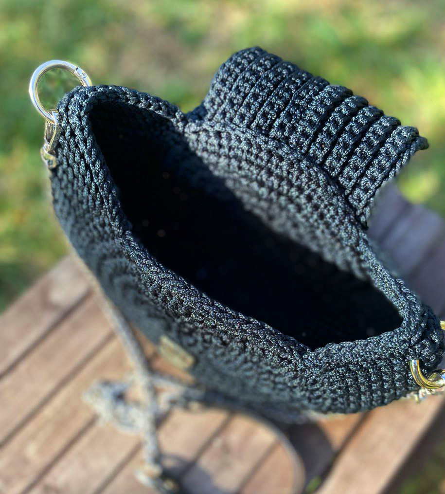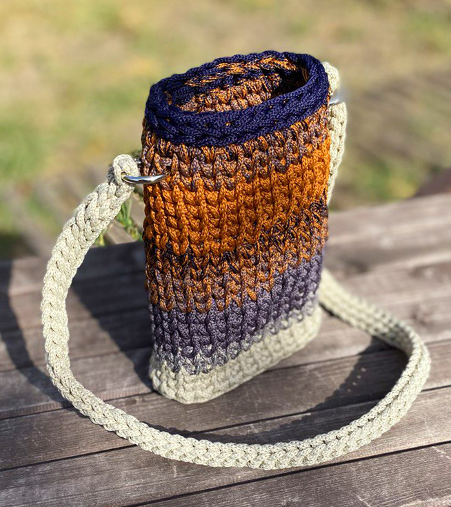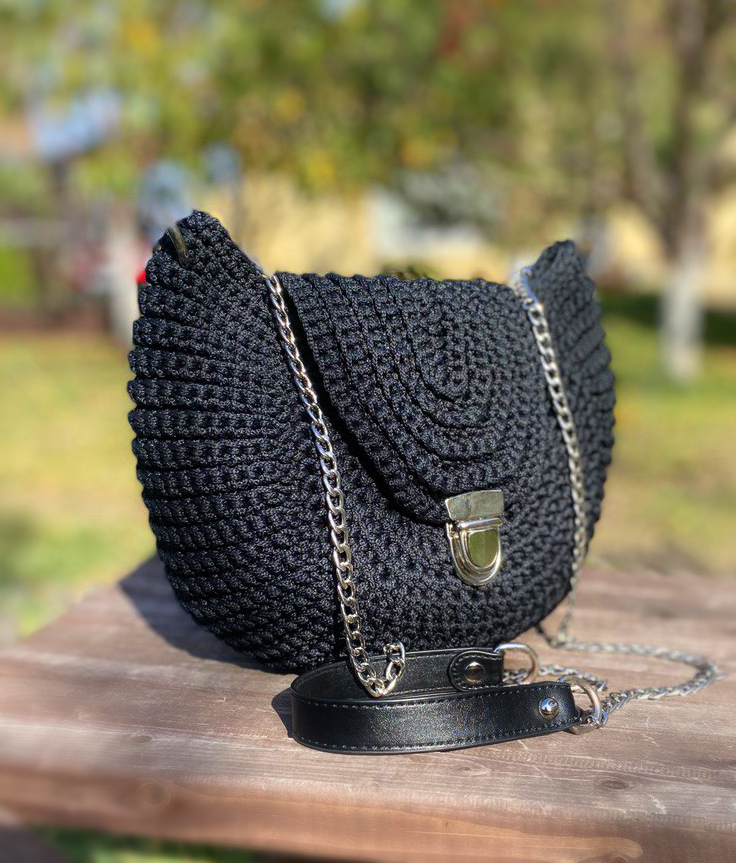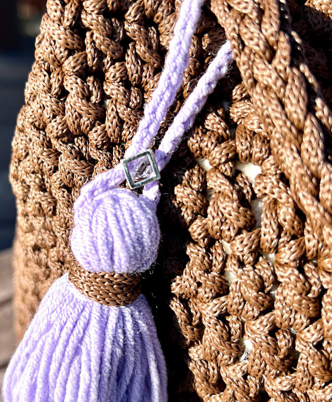Сумочка выполнена из полиэфирного шнура толщиной 2мм Треугольной формы, застежка кнопка экокожа. вязанный ремешок. отлично сммотрится как со спортивной одеждой, так и с легким платьем. Размер готовой сумки 18х18х18 см