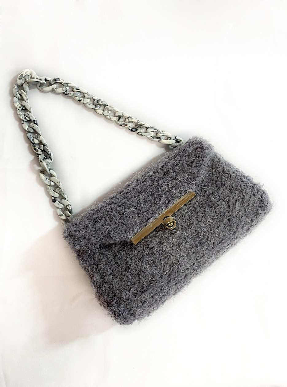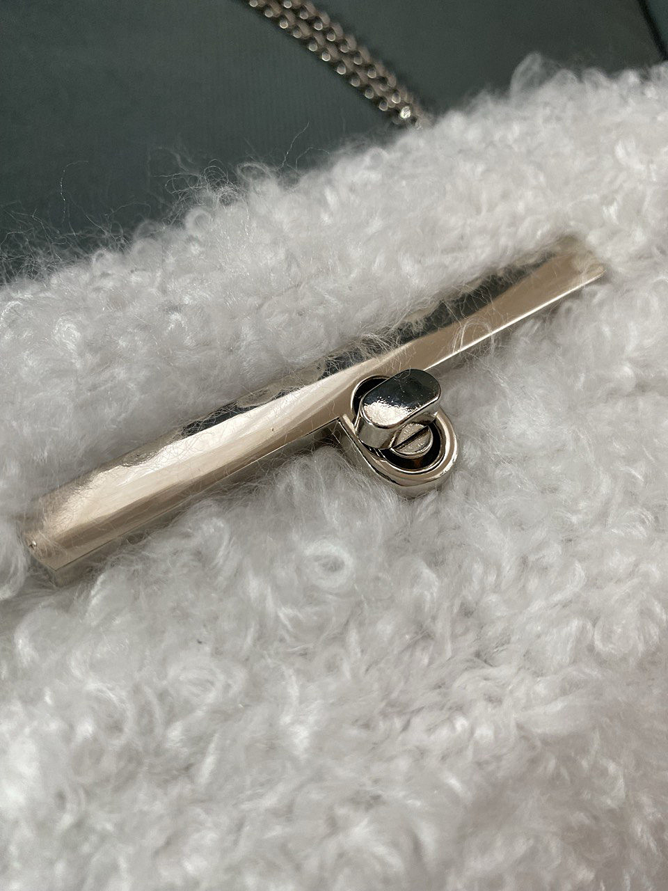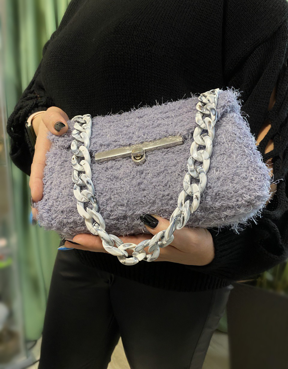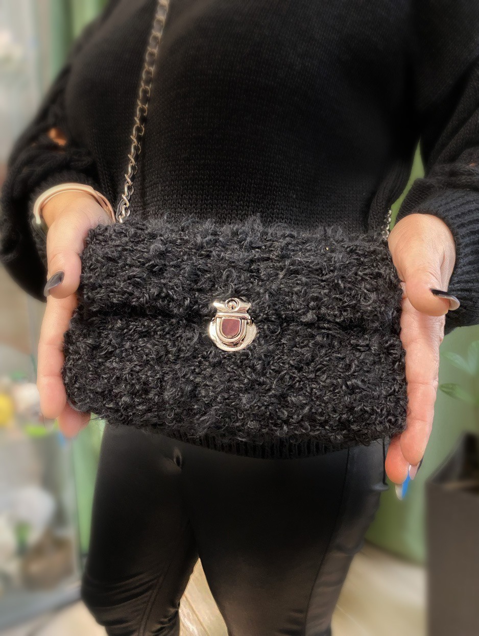 Сумочка Выполнена из буклированной пряжи на канве. Акриловый ремешок, застежка цвет серебро. Размеры готовой сумки 23х16х6 см. Отлично подойдет под вечерний наряд. Смотрится элегантно.