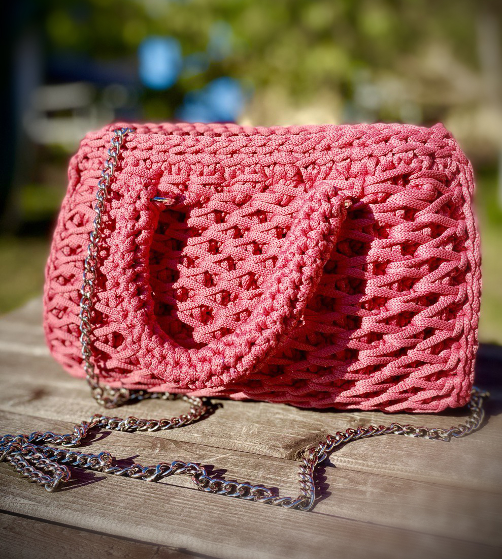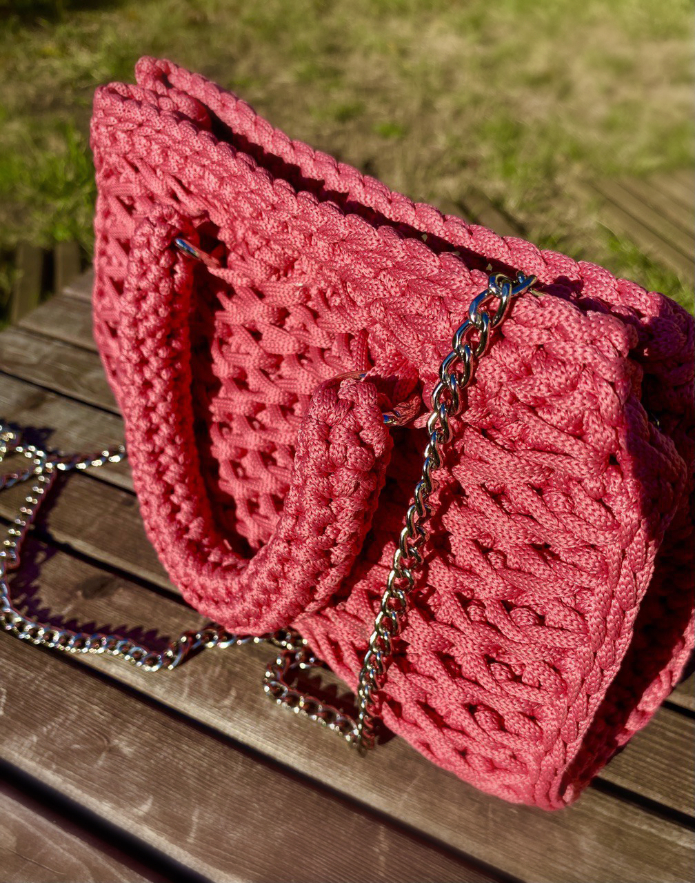 Сумочка-мини "Соты-2" выполнены из полиэфирного шнура толщиной 3мм. Шнур плотный, износостойкий, не выгорает на солнце. Сумка очень элегантная, легкая, вместительная, модная. Цвет "Брусничный" Под заказ цвет по желанию заказчика