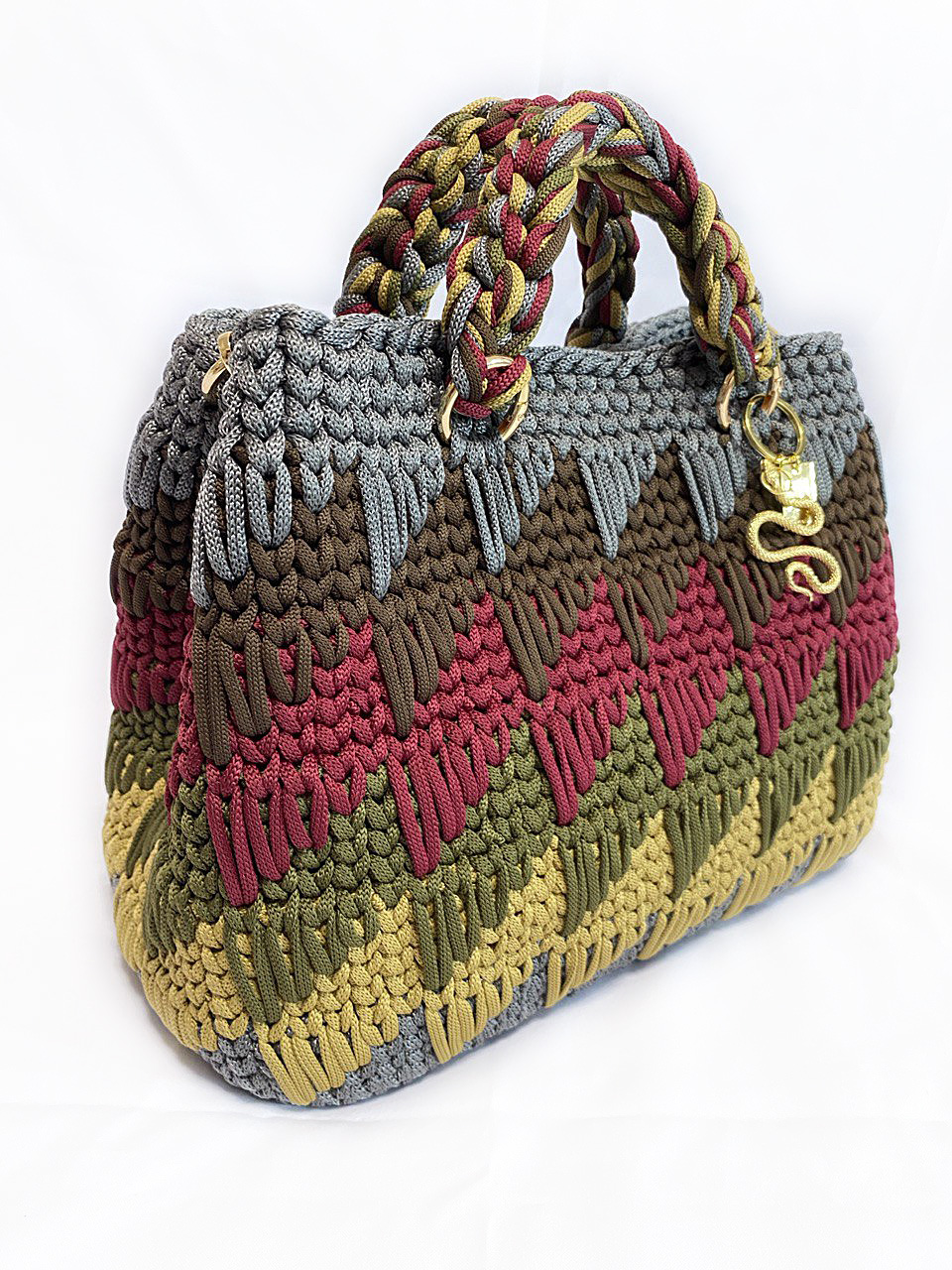 Сумка "Варвара" выполнена из полиэфирного шнура - 3мм, в три цвета. Форма сумки оригинальной трапециевидного кроя. Очень плотный рисунок, отлично держит форму. Цвет на выбор Заказчика.