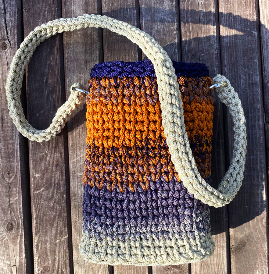 Сумка для телефона выполнена из Полиэфирного шнура толщиной 3мм. Яркая, молодежная, мягкая и невероятно нежная. Сумка очень удобна для телефона. Под заказ цвет по желанию заказчика