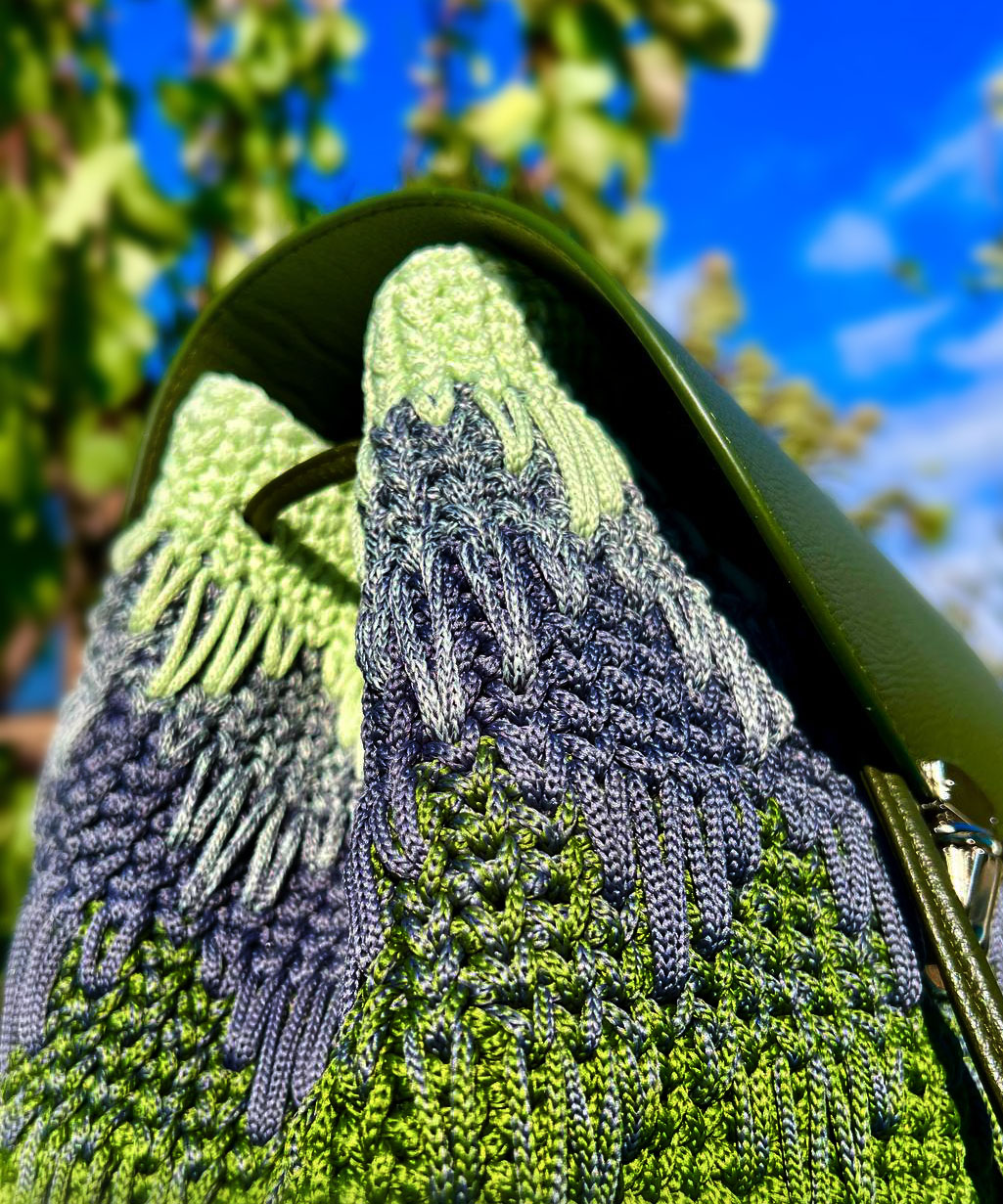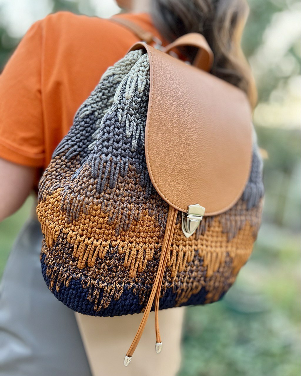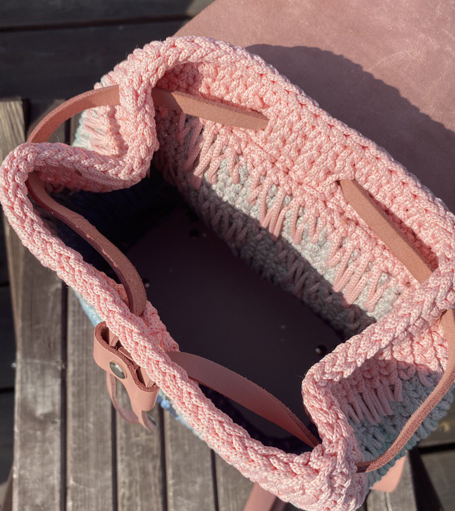 Рюкзак выполнен из полиэфирного шнура шириной 3мм градиент "Скандинавия". Структура нити мягкая и приятная на ощупь. в/ш/д 30см/14см/25см Качественная фурнитура из экокожи, подклад из плотной ткани