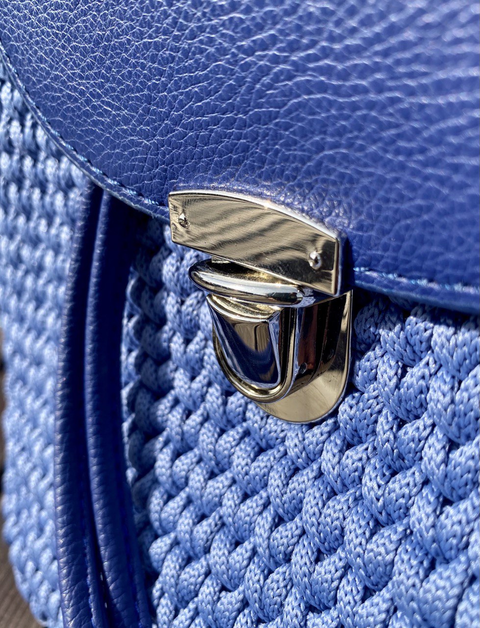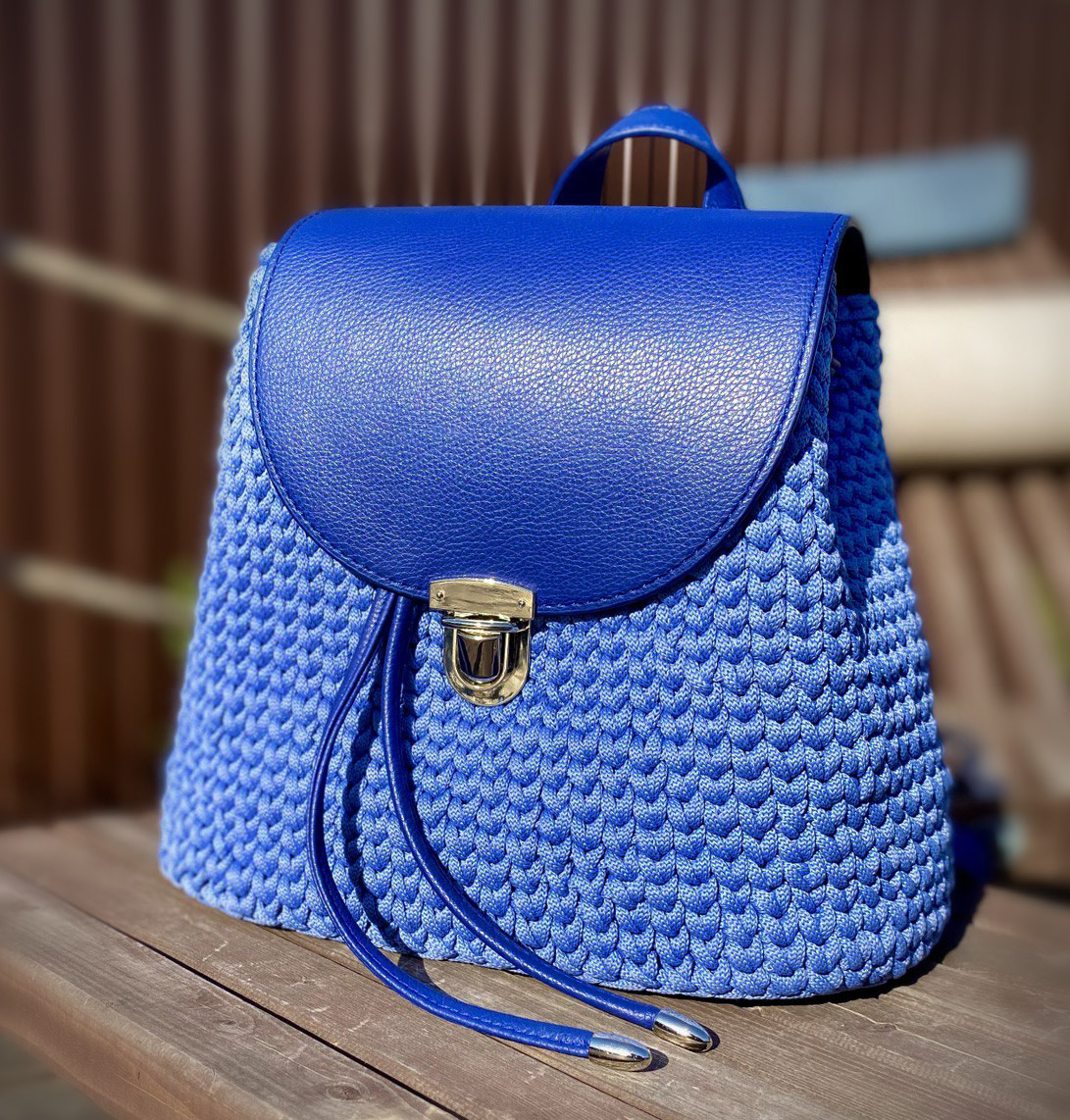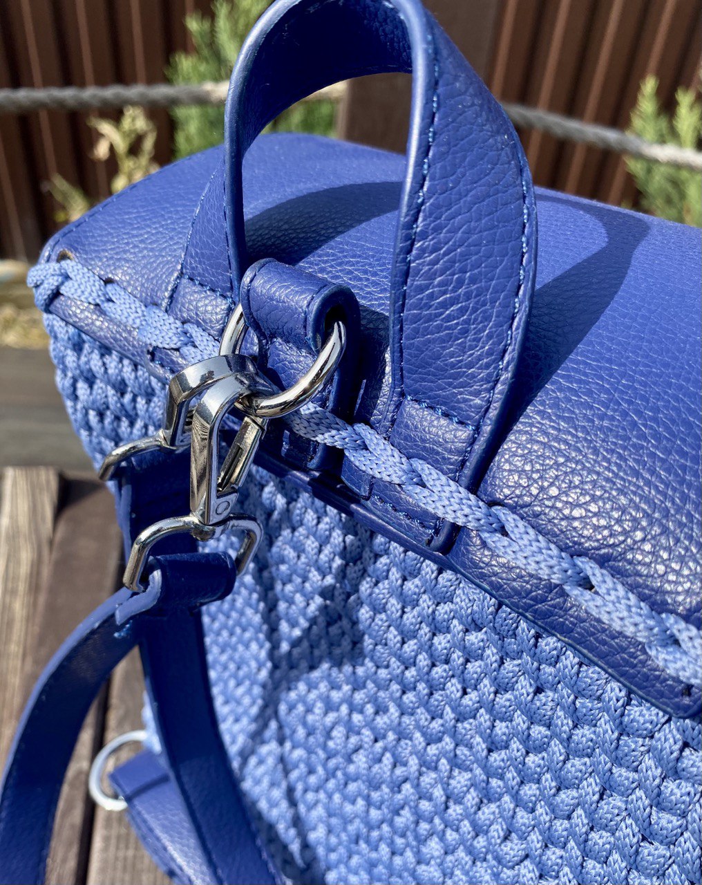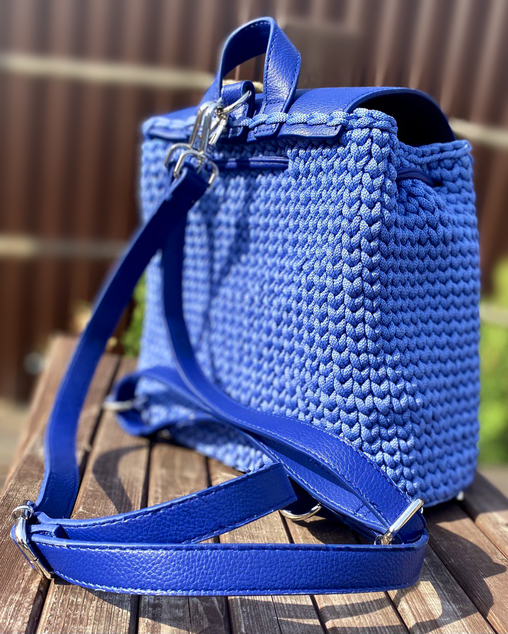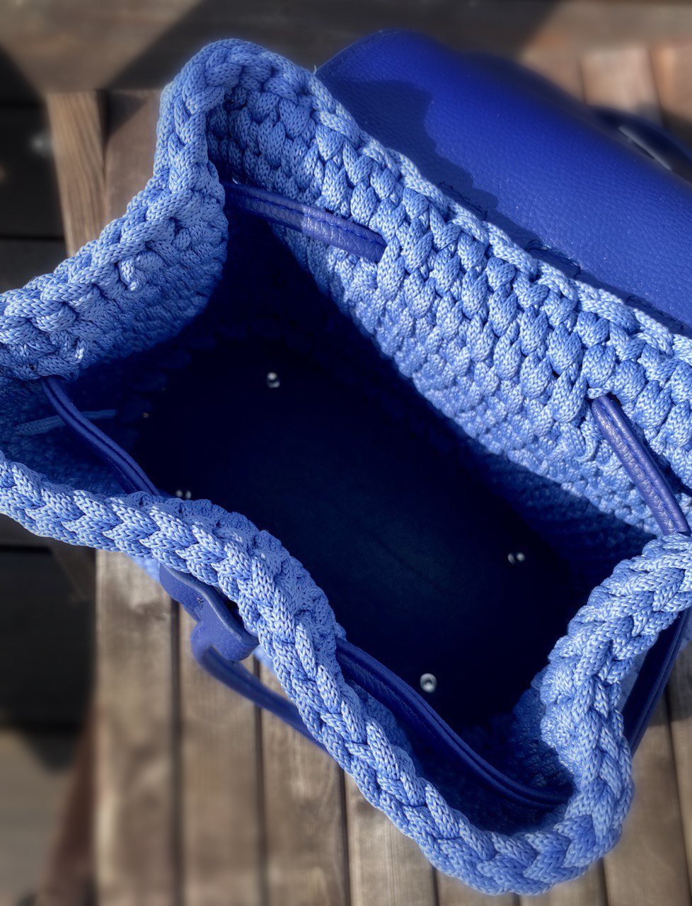 Рюкзак "BLUE" выполнен из полиэфирного шнура шириной 5мм в плотном рисунке. Рюкзак миниатюрный, но вместительный. В\Ш\Д 25см/16см/25см. Качественная фурнитура из экокожи Легкий, милый и элегантный, цвет исполнения может быть любой, по желанию заказчика.