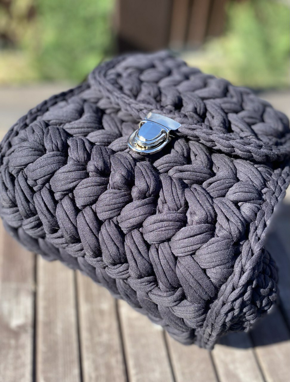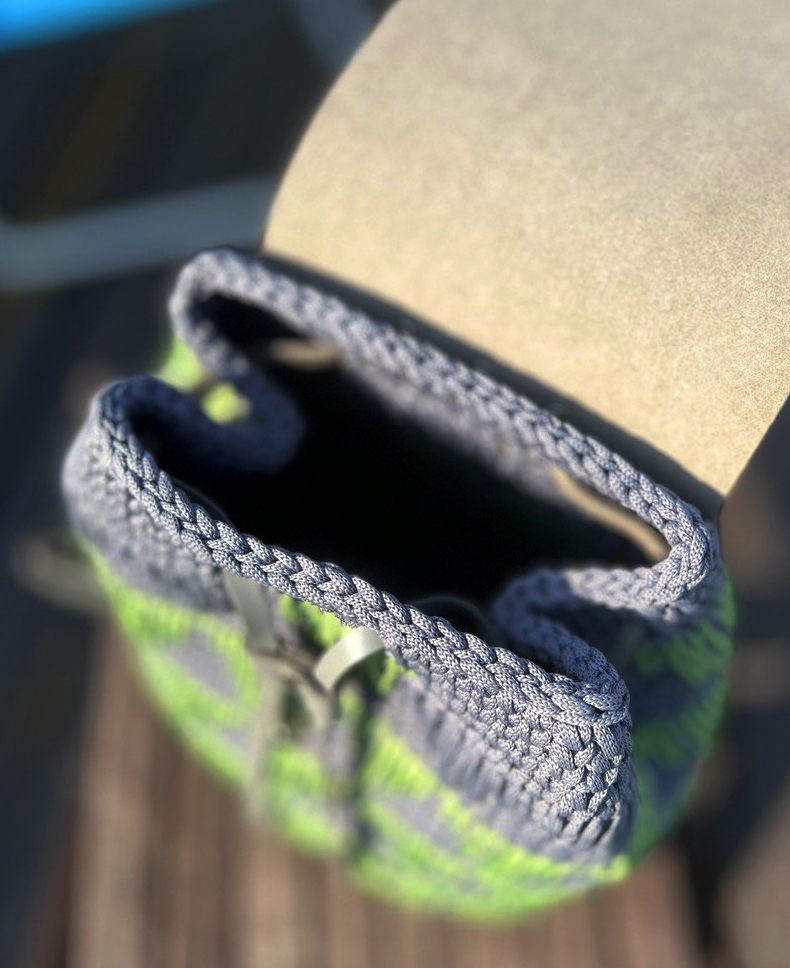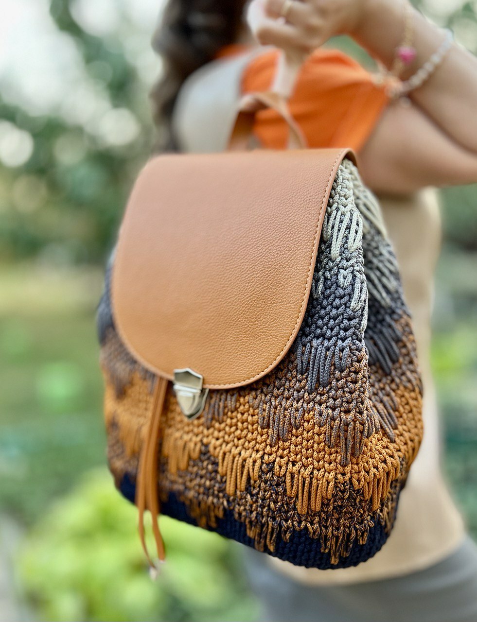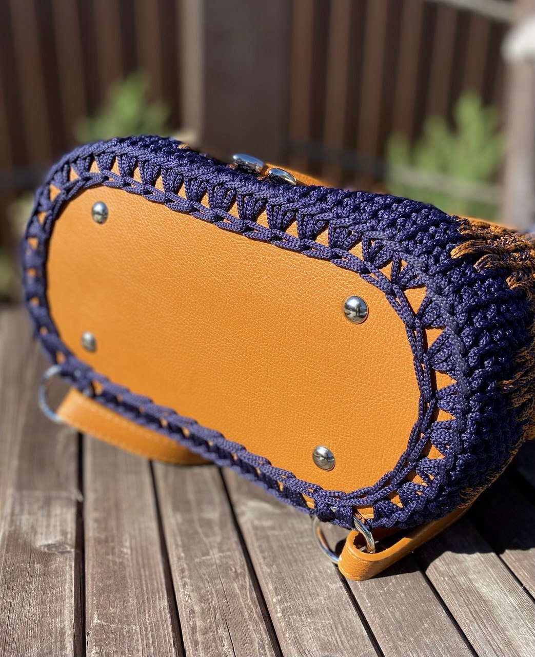 Рюкзак выполнен из полиэфирного шнура шириной 5мм и 3мм Комбинированная нить 2х цветов. Структура нити мягкая и приятная на ощупь. в/ш/д 30см/14см/25см Качественная фурнитура из экокожи, подкладка из плотной ткани
