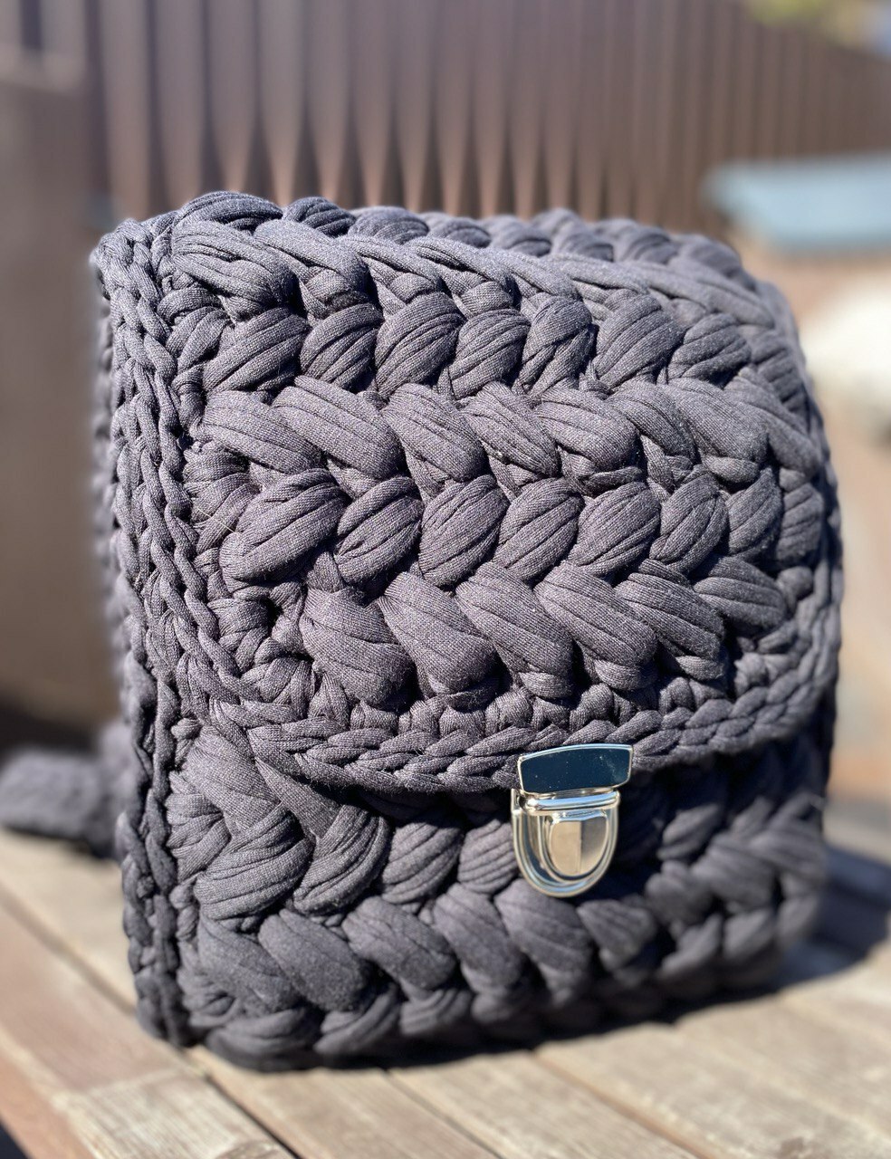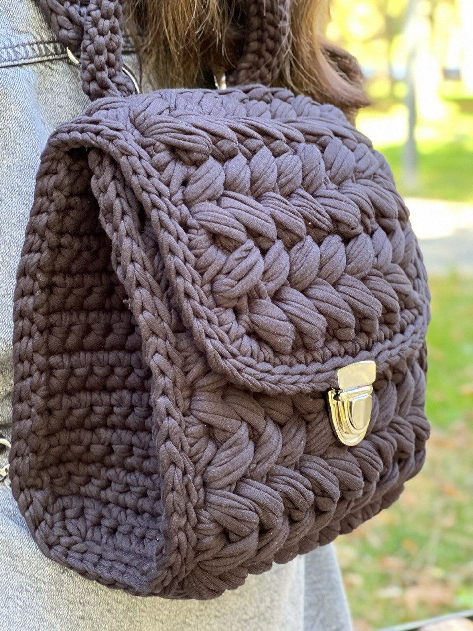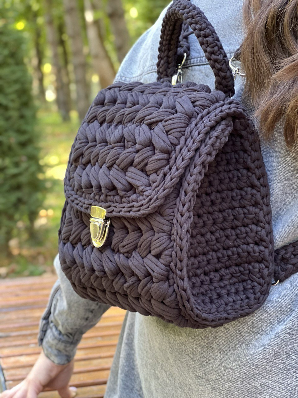 Рюкзак "Зефирка" выполнен из трикотажной пряжи в интересном рисунке. Рюкзак миниатюрный, но вместительный. В\Ш\Д 25см/16см/25см. Легкий, милый и элегантный. цвет исполнения может быть любой, по желанию заказчика.